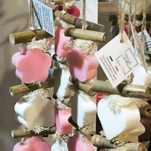 - Tresses de savons artisanales avec ou sans petites décoration en plâtre de la Fabrique Lomaelle à Ventric dans le Gard